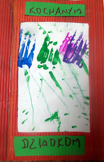 W tym roku na jutrzejsze święto przygotowaliśmy laurki przedstawiające bukiety kwiatów zrobione z odcisków widelców. W zeszłym roku wyczarowaliśmy takie: KLIK.